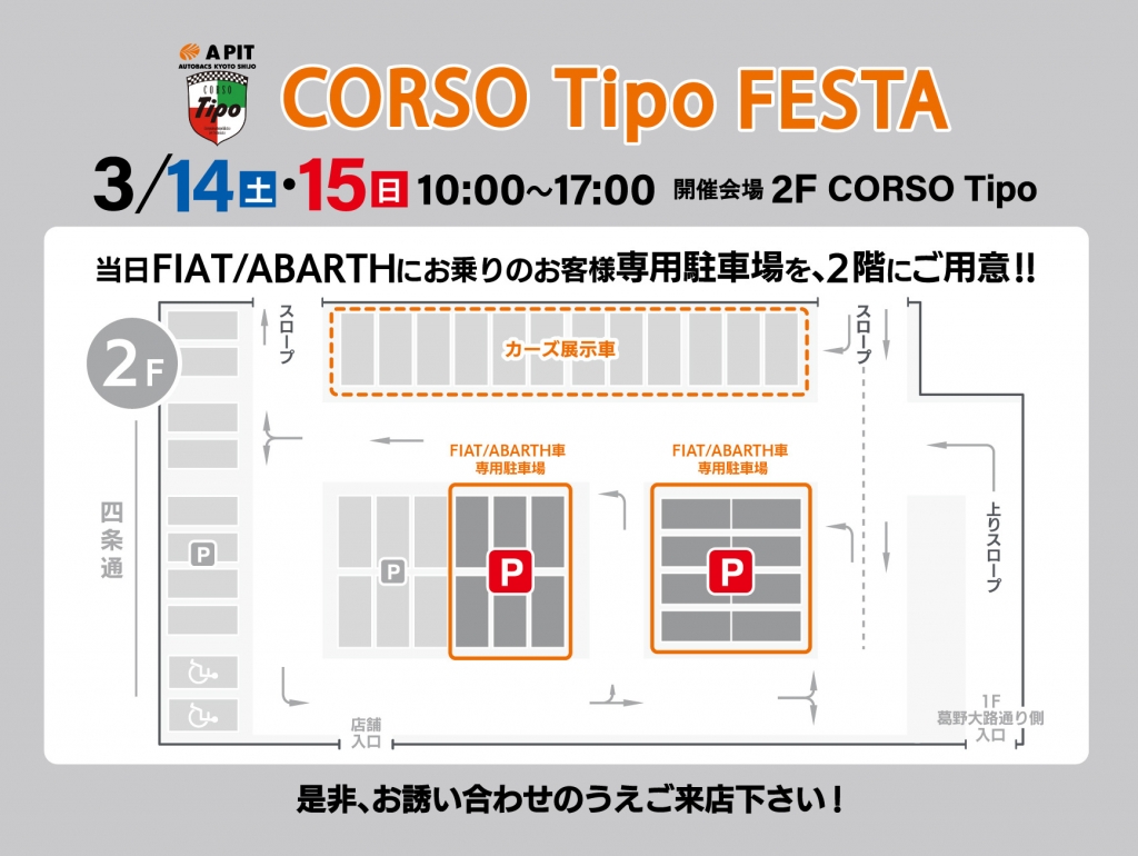 3月14日(土)15日(日)はCORSO Tipo FESTA in APIT AUTOBACS京都四条