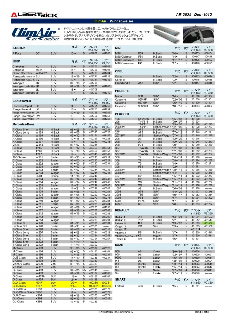オリジナルデザインを損なわないスタイリッシュなデザインで、車内の換気システムと雨天候時の快適なドライブをアシストします。